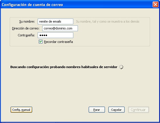 4.- A continuación para continuar detendremos la configuración automática y pulsaremos en el botón Configuración manual.