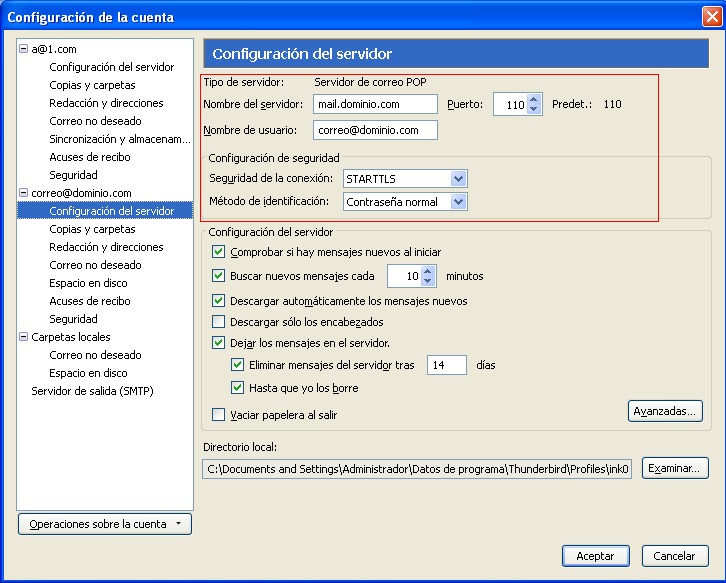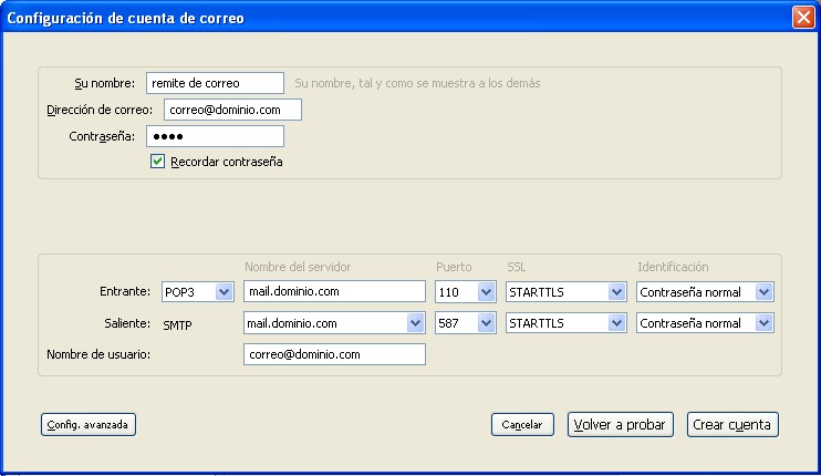 -Servidor de correo entrante: mail.dominio.com (sustituyendo dominio.com por el nuestro)