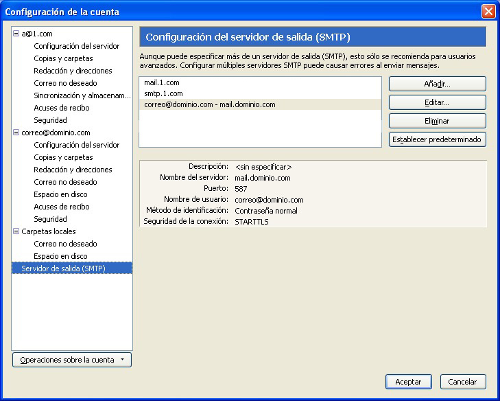 -Puerto: 587 (si aparece por defecto el 25, lo debemos sustituir por el 587)