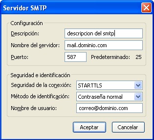 -Servidor de correo saliente (SMTP): mail.dominio.com (sustituyendo dominio.com por el nuestro)