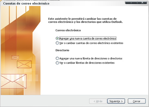 Paso 2. En la ventana que aparece seleccione Agregar una nueva cuenta de correo electrónico, pase a la siguiente etapa con Siguiente.