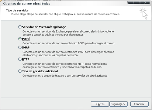 Paso 3. El Tipo de Servidor que tiene que escoger es POP 3.