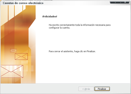Una vez que la ha marcado, pinche en Aceptar donde volverá a la pantalla anterior y seleccione de nuevo Aceptar. Pinchando en Finalizar la cuenta de correo estará configurada en outlook 2003.