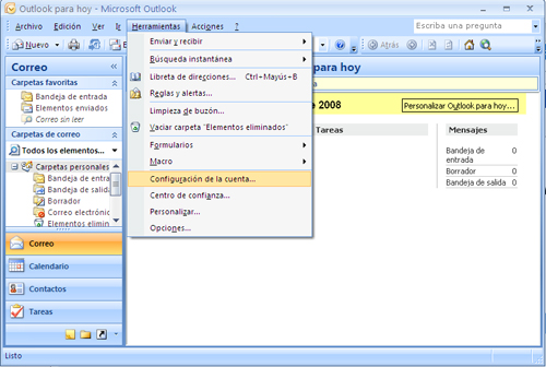 Una vez creada abra el programa Microsoft Outlook 2007 y siga los siguientes pasos para configurarlo: